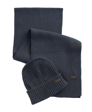 Barbour Navy Beanie and Scarf